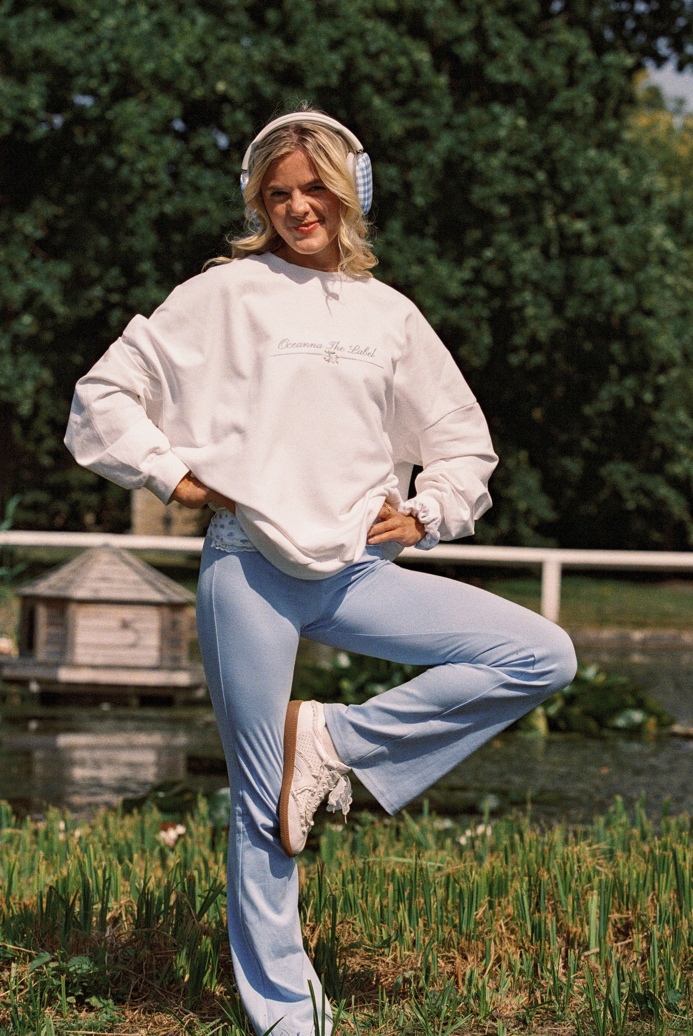 ♡ Your favourite oversized crewneck is officially back in a new style! Featuring beautiful floral embroidery and heart detailing on the back because all our pieces are made with love. Style it with our matching Zoe Set, joggers, or jeans to run your errands while still looking Pinterest-perfect.
